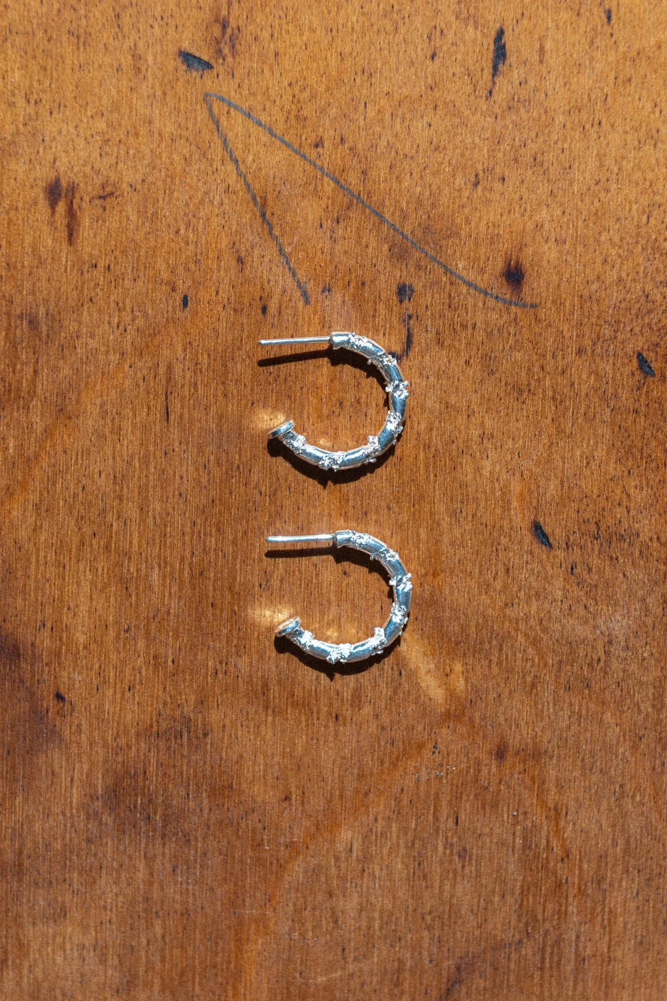 A sculptural hoop defined by texture and light.