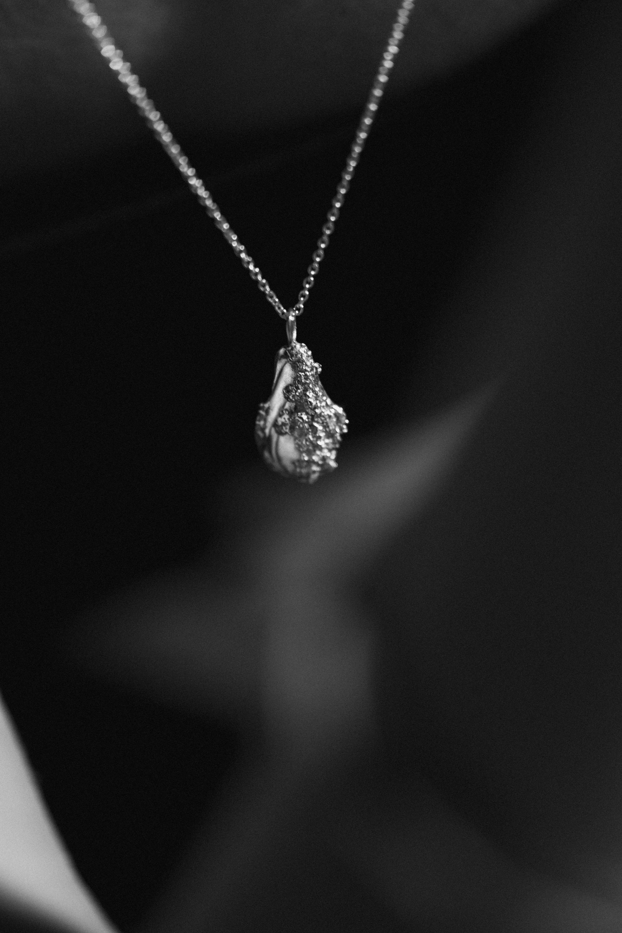 We worked with pyrite, breaking each stone by hand to create the raw texture on top. It was then translated into silver, keeping the surface irregular, almost untouched.